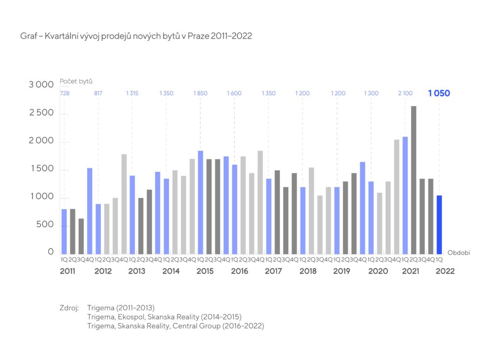 Především velmi nízká úroveň nabídky, nejistota ohledně budoucího vývoje a zdražování a zhoršení dostupnosti hypoték, kdy v souvislosti s nařízeními ČNB opět dochází k zavedení úvěrových limitů DTI a DSTI a na nemovitost je možné si půjčit nanejvýš 80 % hodnoty nemovitosti (s výjimkou žadatelů do 36 let), měly za následek, že část zájemců o nové bydlení své kupní rozhodnutí dočasně odložila. Za první čtvrtletí se v Praze prodalo celkem 1050 nových bytů, což je nejméně od druhého čtvrtletí roku 2020, kdy se jich prodalo 1100. Kvůli mírnému ochlazení poptávky by se mohlo zdát, že dojde k růstu nabídky. Tento růst však bude pouze nominální, v reálném pohledu se nic zásadního nezmění. Nabídka stále ani zdaleka nebude schopna pokrýt poptávku.