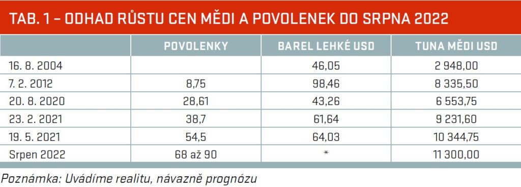 Všeobecný růst cen základních surovin takový není. Například za barel lehké ropy se 16. srpna 2014 platilo 46,5 USD, 19. května 2021 byl barel za 64,03 dolarů. Za sedmnáct let cena ropy po mnoha zvratech vzrostla asi o 38 procent, cena mědi za stejnou dobu nakynula na 350,9 procent výchozího stavu, vzestup o 250 procent.