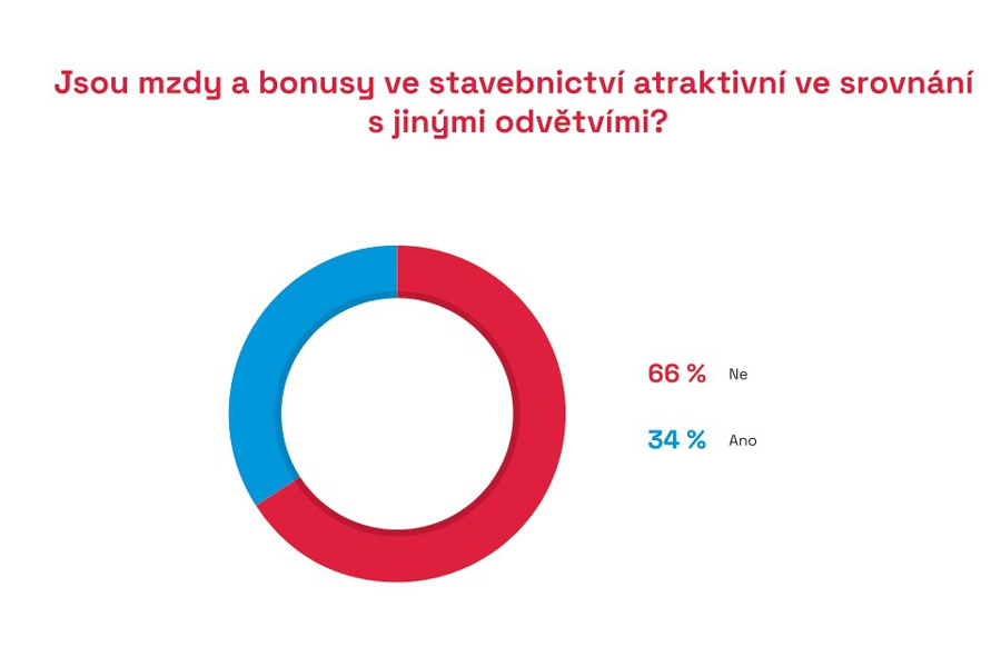 Jestliže 66 % dotázaných ředitelů stavebních společností tvrdí, že mzdy a bonusy pro zaměstnance by měly být více atraktivní, současně téměř polovina společností (47 %) pociťuje zvýšený tlak na zavedení nových bonusů.