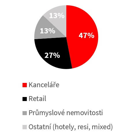 | Rok | Celkem, mil. EUR | Office | Retail | Industrial |