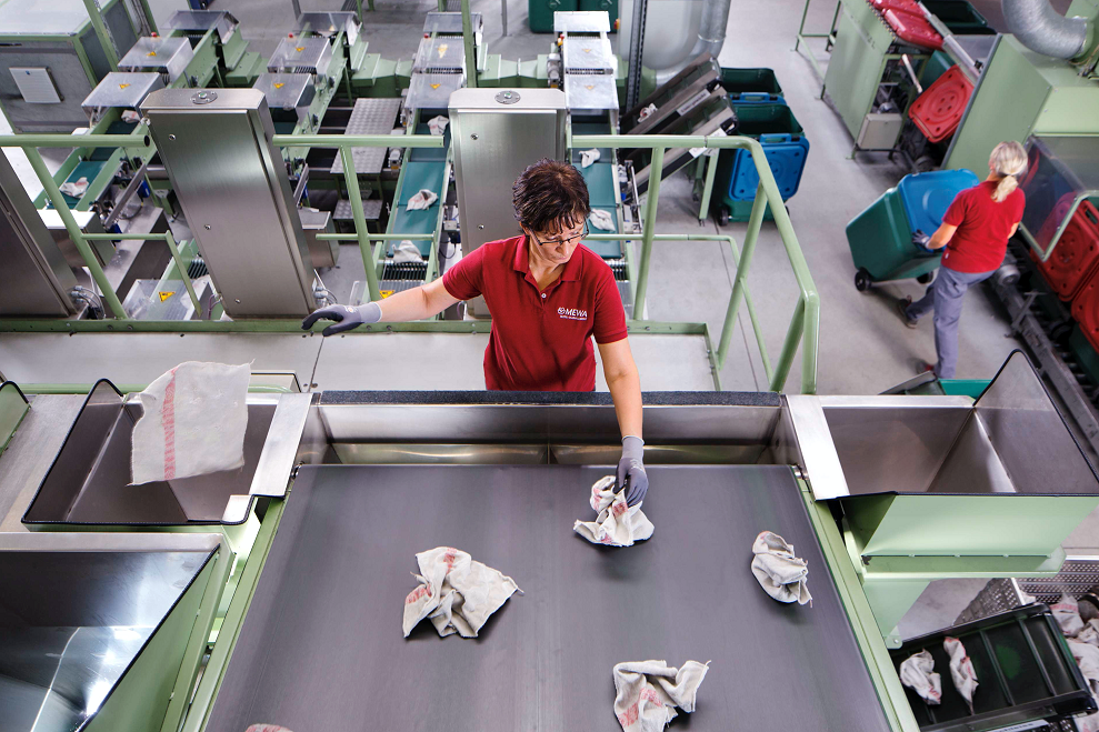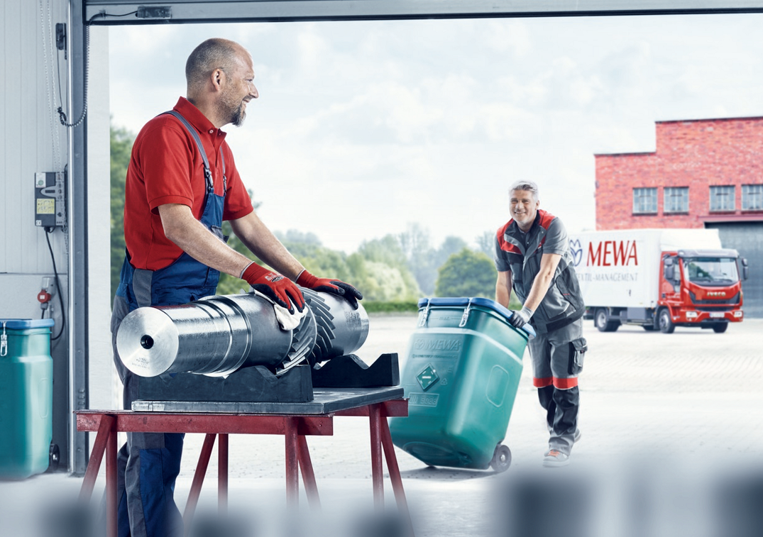 MEWA v průběhu jednoho století optimalizovala produkci, praní i péči o čisticí utěrky. Ty jsou speciálně tkané, a proto mimořádně savé. Hodí se pro údržbu nářadí, strojů a povrchů včetně podlah. Jde o vlastní vynález firmy, stejně jako mycí a sušicí linky, ekologické postupy, několikastupňový systém kontroly kvality nebo bezpečnostní kontejnery SaCON, které hrají v celém systému klíčovou roli. Zákazníkům v podnicích slouží k zajištění bezpečného a praktického skladování použitých utěrek. Stejně tak fungují jako prostředek pro jejich přepravu. Do SaCONu utěrky padají z pásu na konci každého kontrolního procesu. Vážením se zjistí, kdy jsou plné, takže obsahují přesně naprogramované množství čisticích utěrek.