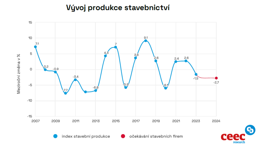 Údaje vychází z Kvartální analýzy českého stavebnictví Q4/2023 zpracované analytickou společností CEEC Research, která byla vydána při příležitosti konference Setkání lídrů českého stavebnictví 2023/H2 ve čtvrtek 9. listopadu 2023 na Pražském hradě a je zveřejněna na www.ceec.eu.
