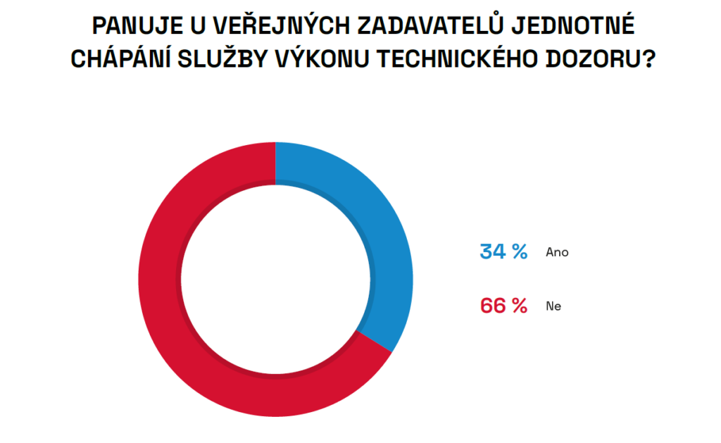 Podle názoru projektantů nepanuje u veřejných zadavatelů jednotné chápání služby výkonu technického dozoru. Podle dvou třetin dotázaných zástupců projektových společností (66 %) není napříč stavebním sektorem v ČR jednotný náhled na výkon technického dozoru.