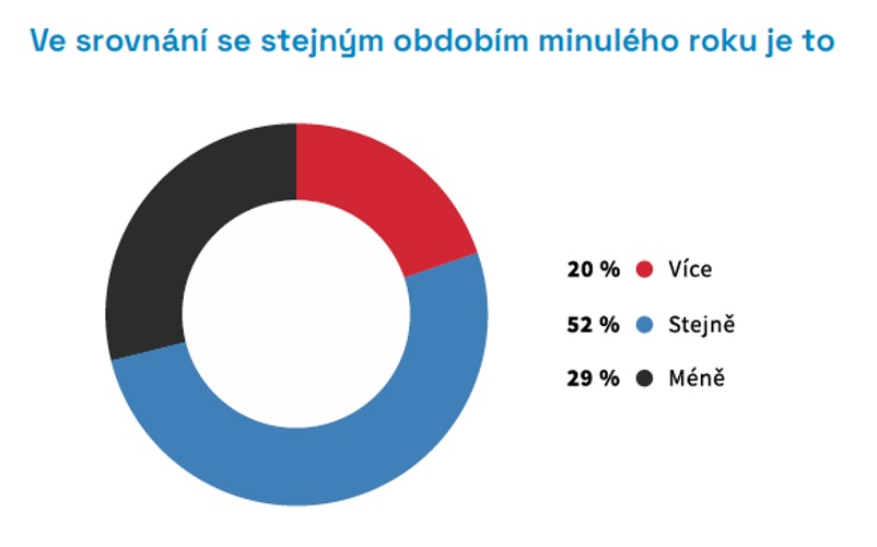 Oslovené projektové společnosti mají v současné chvíli nasmlouvané zakázky v průměru na 7 měsíců dopředu. Pro vice než polovinu dotázaných to představuje stejnou dobu jako ve stejném období minulého roku (52 %). Pro 29 % projektantů se jedna o pokles této doby a pro zbylých 19 % se jedna naopak o narůst doby v meziročním srovnaní.