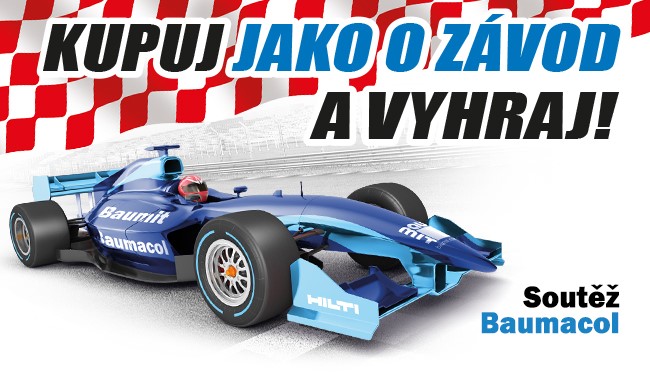 Zapojte se ještě dnes do soutěže pro realizační firmy a vyhrajte hlavní cenu, a to jeden z dvaceti zájezdů na závody formule 1 – Velkou cenu Monaka, nebo cenu měsíční v podobě nářadí Hilti pro profesionály v celkové hodnotě 50 000 Kč pro deset výherců. Ale pozor, čas se krátí a soutěž uzavíráme na konci února. Stačí jen zaslat prodejní doklad o nákupu některého z produktů Baumit Baumacol – lepidel na obklady, spárovacích hmot, hydroizolací, tmelů nebo příslušenství. Za každých 1000 Kč vč. DPH získáte jeden los do osudí. Více o soutěži na www.baumacol.cz.