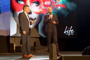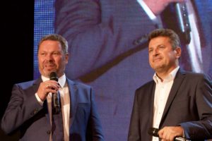 Jednatel společnosti Baumit Ing Pavel Med (vlevo) s moderátorem slavnostního večera Liborem Boučkem (vpravo)
