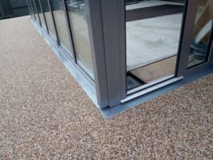 V létě 2018 probíhají dokončovací stavební práce na apartmánovém domě v Harrachově v horském prostředí Krkonoš.  Součástí je i finalizace povrchů vyhlídkových teras a jejich odvodnění.