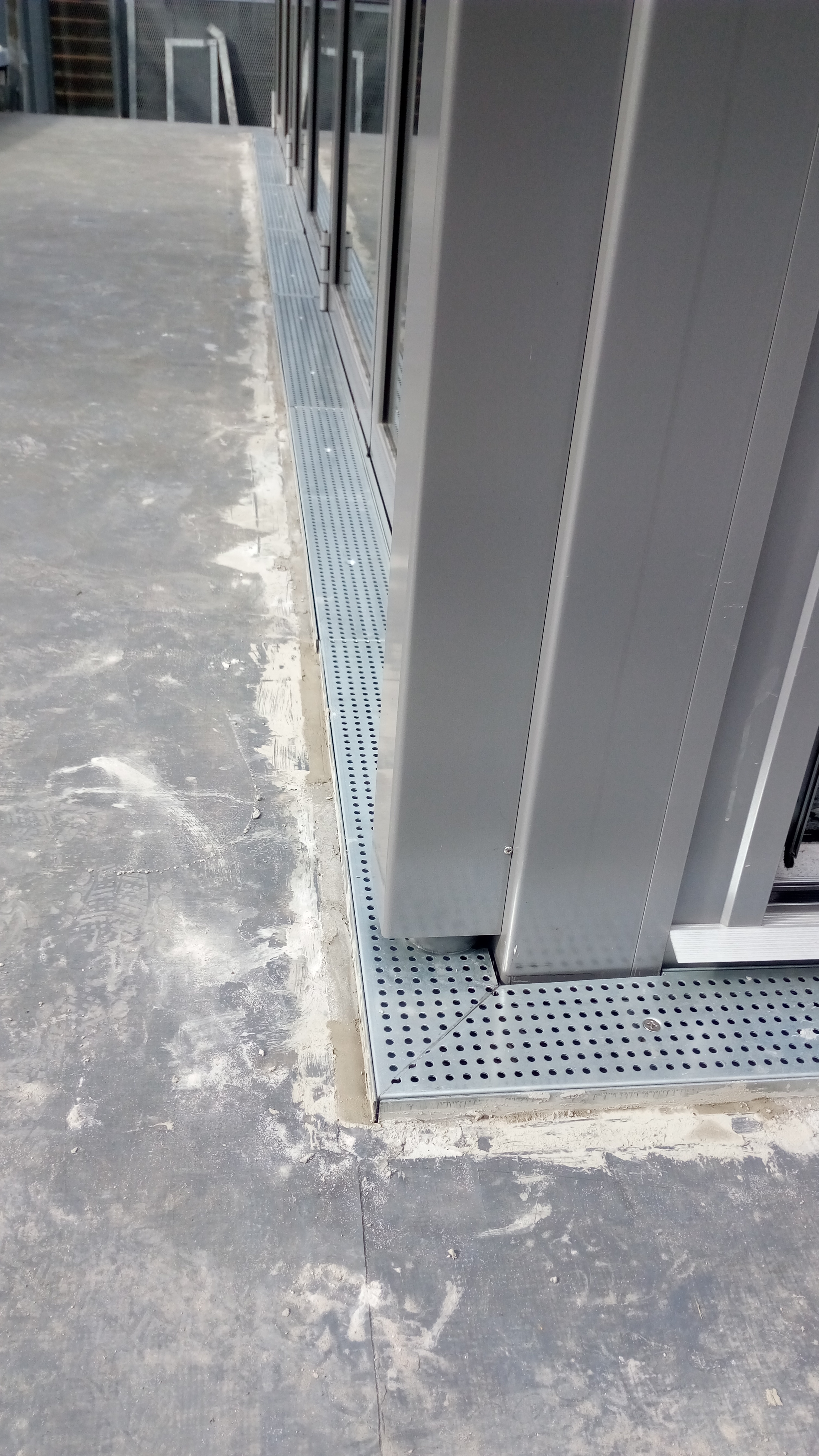 Na terasy v Harrachově byly použity systémové žlaby MEATEC V130, které jsou výškově nastavitelné od 55 do 150 mm s děrovaným roštem pro třídu zatížení A15 kN. Jednoduchý design roštu téměř splývá s šedou konstrukcí oken a nenarušuje vzhled terasy.  Žlab s roštem se zarovná do stejné výšky s jakýmkoliv finálním povrchem – dřevem, dlaždicí, betonem i oblázkovým posypem.