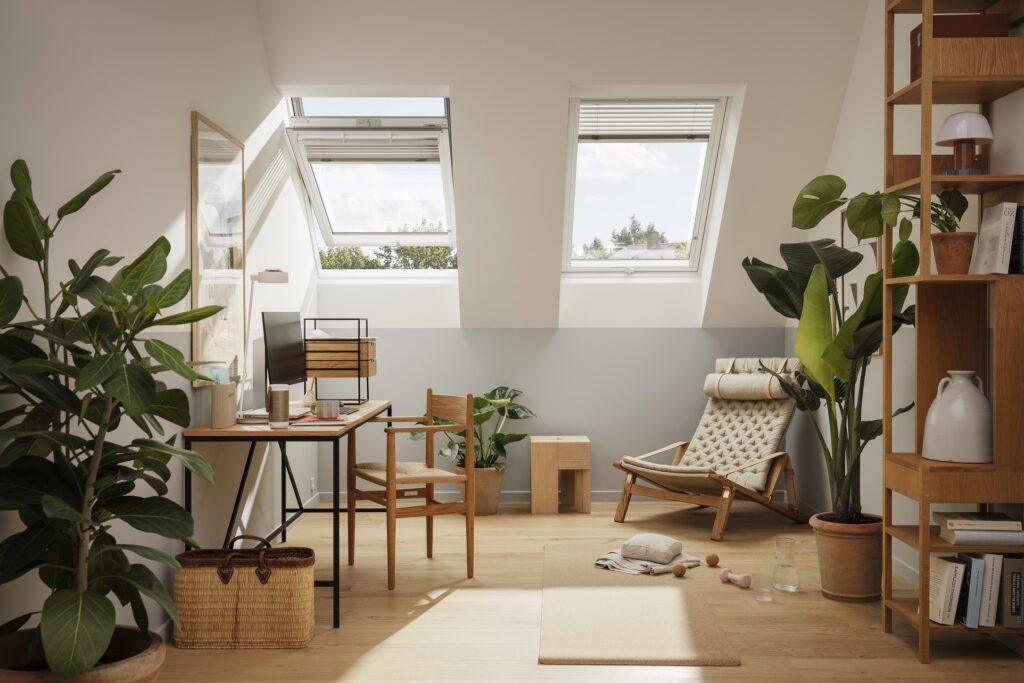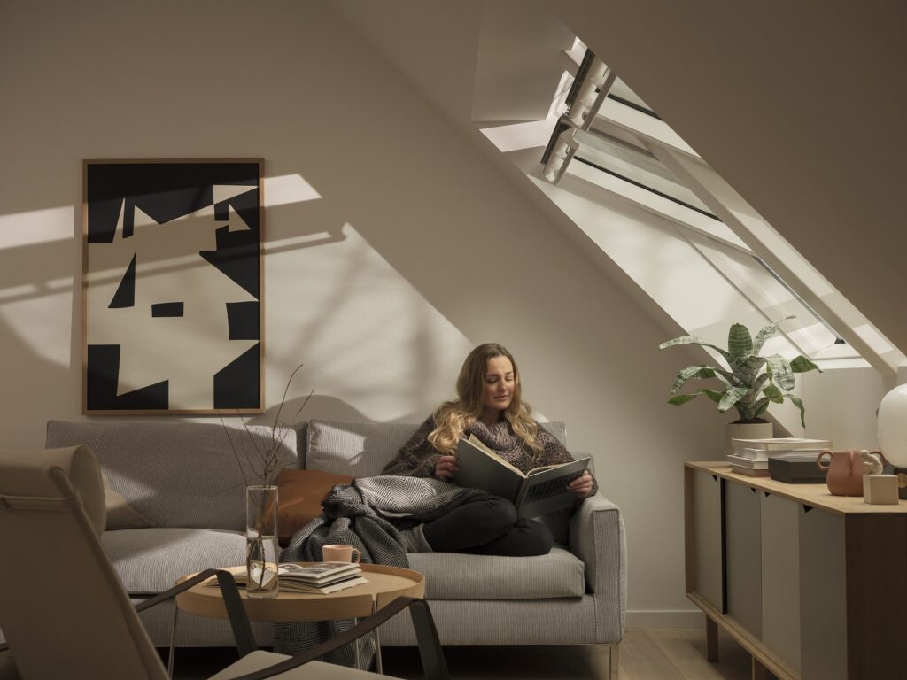 Interiéry, které jsou plně prosvětleny denním světlem, zvyšují produktivitu až o 15 %. Možnost rozhlédnout se a podívat do dálky také zmenšuje riziko krátkozrakosti. Dostatečný počet správně rozmístěných oken propustí do interiéru dostatek světla a čerstvého vzduchu, což má pozitivní účinky na snížení krevního tlaku a tepové frekvence. Podle listu Financial Times, který cituje přední britské architekty, „skoro každý moderní projekt bydlení zahrnuje řešení, jak skloubit interiér s pocitem exteriéru“. Dřevěná okna perfektně reflektují ekologický styl bydlení, zvlášť pokud jsou, tak jako okna VELUX, vyrobena z certifikovaného dřeva těženého v udržitelném množství. Tento způsob výroby je garancí ochrany biodiverzity a volně žijících zvířat a rostlin, udržitelnost navíc zaručuje opětovné zalesňování a výsadbu nových stromů.