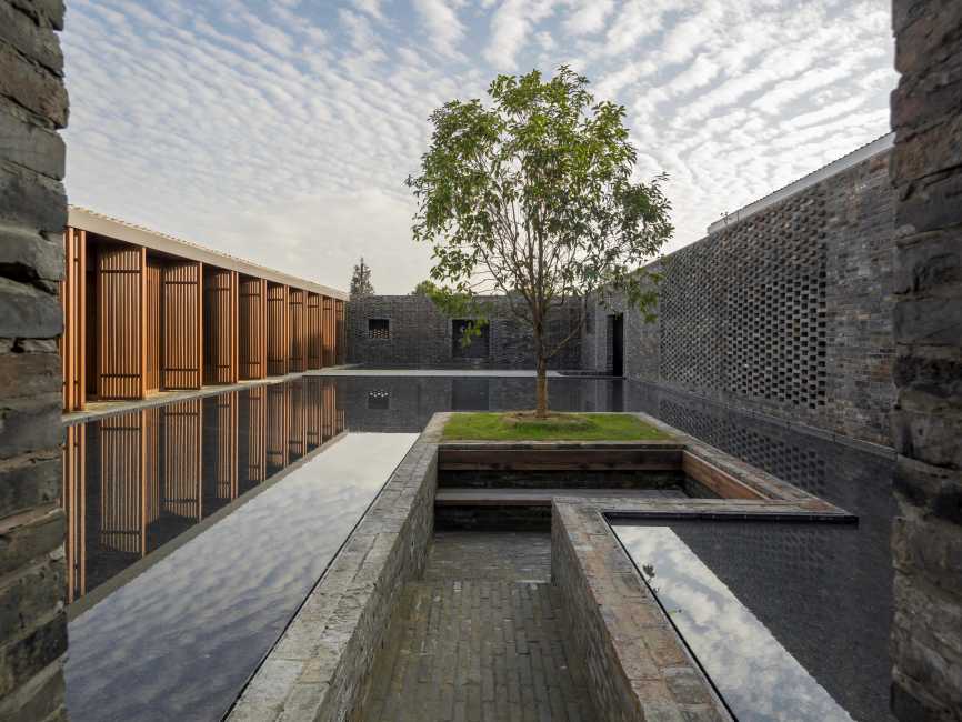 Na tomto místě dříve žili rybáři a zemědělci. Před zahájením výstavby se zde nacházel sklad a několik malých domků. Na přání klienta byly tyto struktury částečně zachovány a ovlivňují identitu projektu. Projektantům se podařilo spojit chaty s luxusním hotelem s odkazem na tradiční čínskou architekturu. Na pozemku byla vytvořena mřížka, která připomíná tradiční čínské domy na nádvoří a propojuje stávající budovy. S výjimkou dvoupodlažního domu ve dvoře, kde se nachází knihovna a některé pokoje pro hosty, jsou všechny budovy v areálu jednopodlažní. Cihlové zdi obklopují všechny funkční plochy včetně čtyř zahrad. Zdivo je částečně uzavřené a částečně otevřené. Otvory ve stěnách nabízejí řadu výhledů do různých teras recepce, restaurace a pokojů pro hosty. Při procházení budovou se otevírají mnohotvárné prostory a choreografické výhledy na vnitřní a vnější krajinu – propojení nebe a země. Tento vítězný projekt v kategorii „Inovace / novátorské projekty“ odkazuje na tradiční architekturu regionu. Recyklací a opětovným použitím regenerovaných cihel však také prokazuje silný závazek k udržitelnosti a odpovědnosti vůči životnímu prostředí.