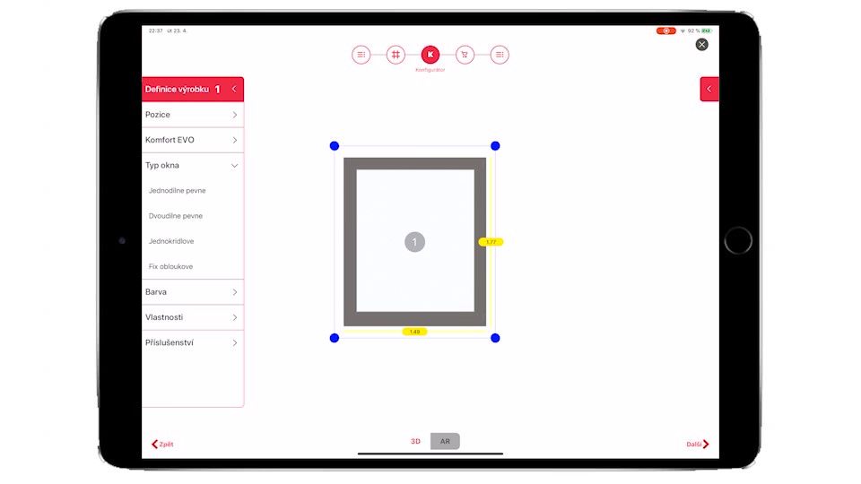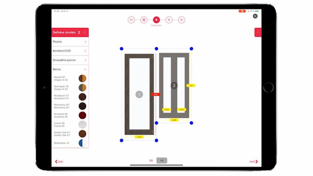Aplikace zároveň slouží také jako měřicí list. S orientačním zaměřením stavebního otvoru pomáhá fotoaparát iPadu, přesné rozměry pak odborný technik upraví dle zaměření laserovým zaměřovačem.