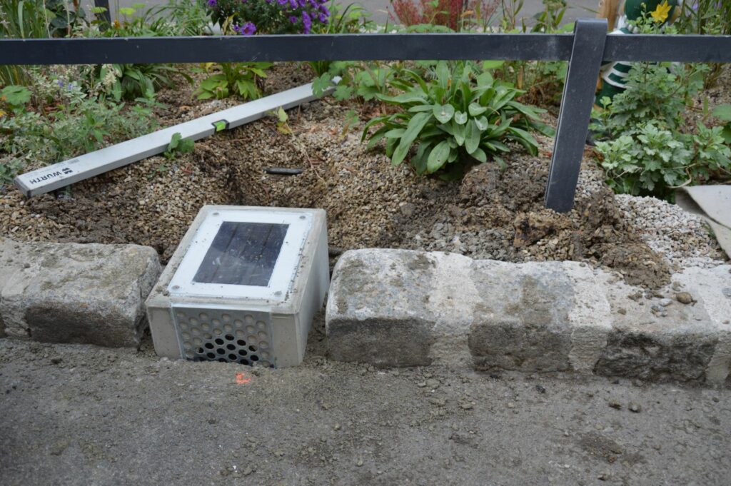 Veškerou potřebnou energii získává zařízení přes solární článek umístěný v horní části pod pevným průhledným krytem, který je podle radnice konstruován i na přejezd vozidel. Dovnitř „chytrého kamene“ instaluje Vídeň i baterie. Kompaktní a jednoduchá konstrukce bez nutnosti připojovat zařízení na jakoukoliv síťovou infrastrukturu umožňuje bezproblémovou integraci do nově vznikajících obrubníků i dodatečnou montáž do stávajících obrubníků a kořenišť.