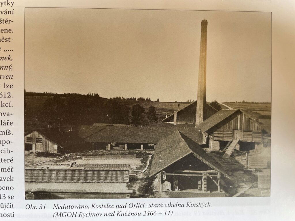 Prvním písemným dokladem o spojení výroby cihel s rodinou Kinských v Kostelci nad Orlicí je záznam o kolaudaci kruhové cihelny Bedřicha Karla Kinského, podnik byl zkolaudován 9. prosince 1898, letos tedy slavíme také 125 let od založení tzv. staré cihelny rodinou Kinských. Na počátku 20. století zaměstnávala 80 dělníků.