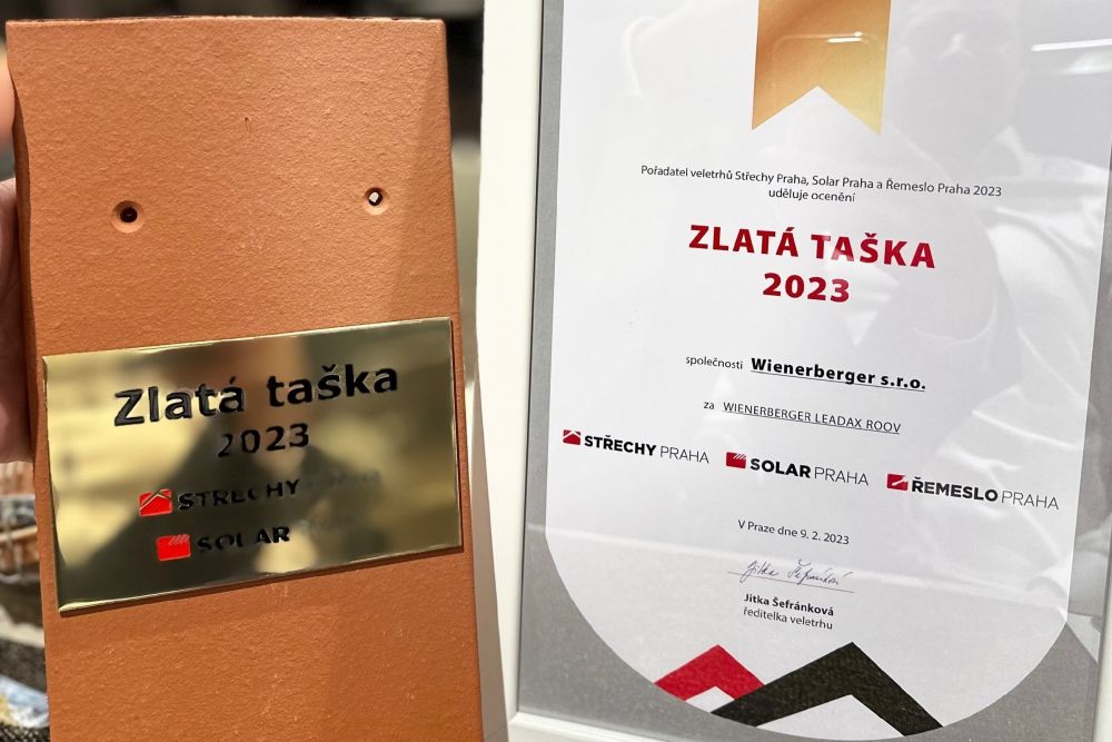 Unikátní hydroizolační folie Leadax Roov od společnosti Wienerberger získala na veletrhu Střechy Praha 2023 ocenění Zlatá taška. Odborná porota ocenila její praktičnost i ekologické přednosti. Cílem soutěže je zviditelnit produkty, které přináší významný pokrok, dosahují ve svém oboru světové úrovně, nabízí mimořádnou kvalitu za přijatelnou cenu nebo jsou zvláště šetrné vůči životnímu prostředí. Do 21. ročníku soutěže o nejlepší exponáty veletrhu bylo přihlášeno celkem 15 inovací, ze kterých dva získaly titul a čtyři čestná uznání.