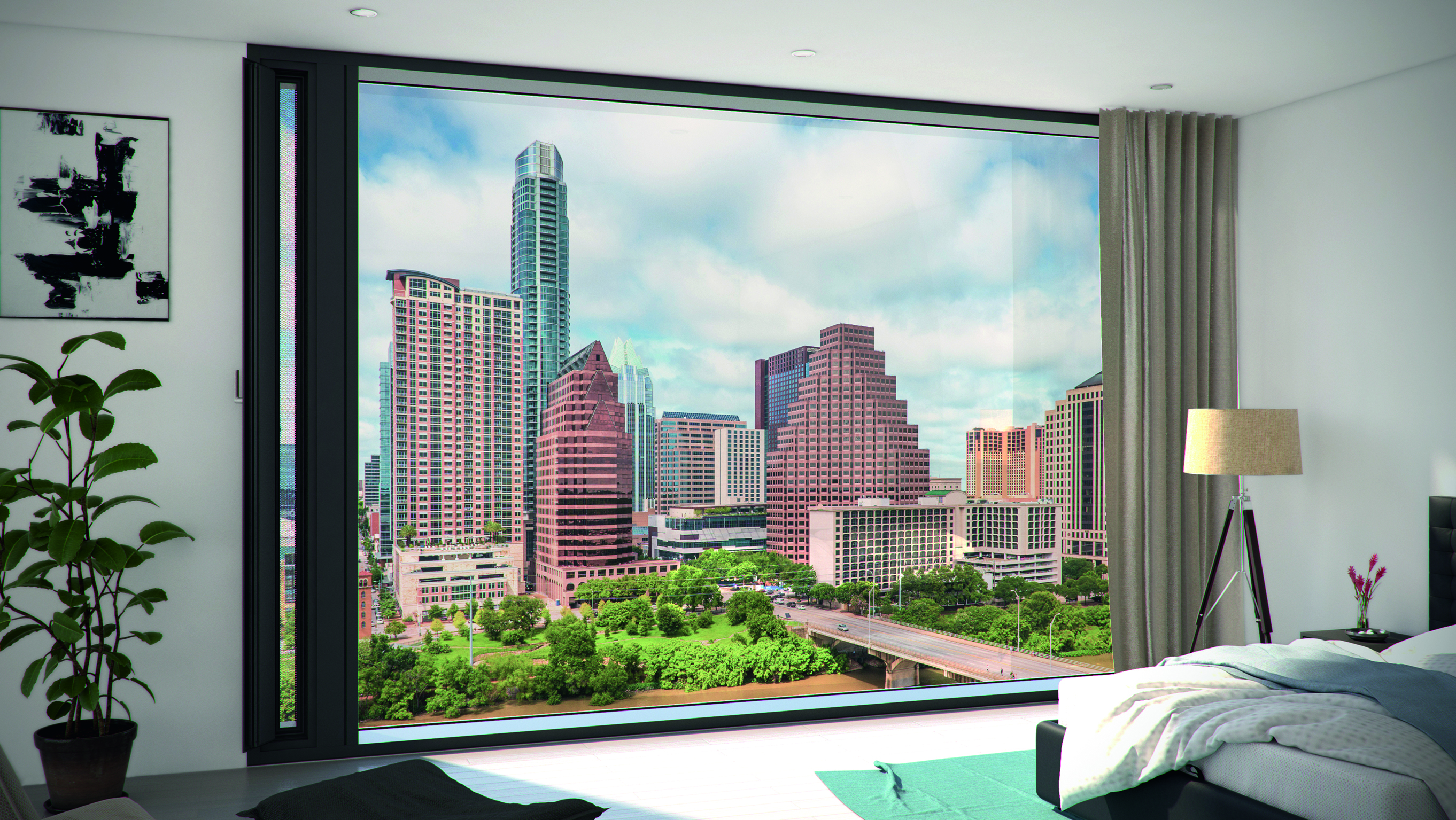 Schüco prototyp představený na BAU 2019: Moduly ANC (Active Noise Canceling) skryté ve ventilačním křídle AWS VV snižují hladinu hluku.