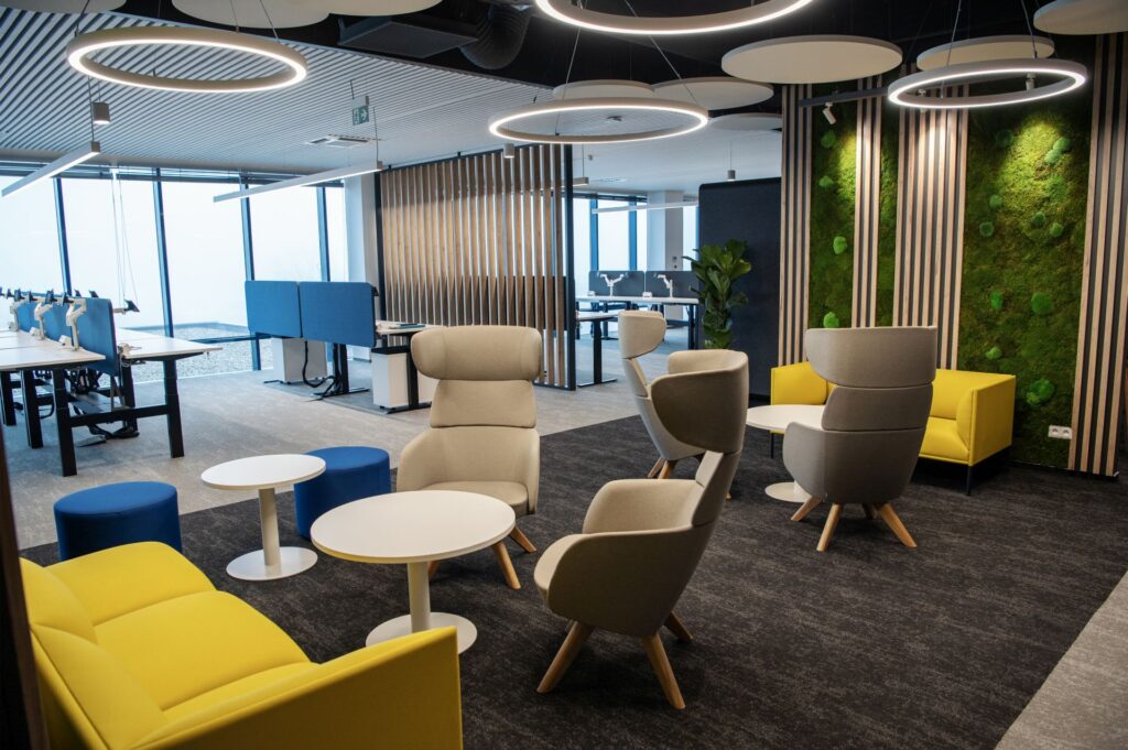 Prostor se vyznačuje unikátní souhrou moderních a tradičních materiálů – vedle plastů je zde kladen důraz na dřevo, sklo a přírodní prvky. Jelikož se jedná o kancelářskou budovu, bylo důležité, aby se v ní cítili dobře koncoví zákazníci, což jsou zaměstnanci firmy Hyundai Motor Manufacturing Czech. Původní budova tak po provedené rekonstrukci nabízí velkorysý prostor pro společnou práci i menší, oddělené místnosti pro meetingy a chvíle, zaměstnanci potřebují klidnější prostředí na jednání, či soustavnou práci. „Rovněž jsme se zde rozhodli dát slovo přírodě, díky živým rostlinným stěnám, které prostoru vdechly pocit svěžesti a života,“ dodal Colin Glover.