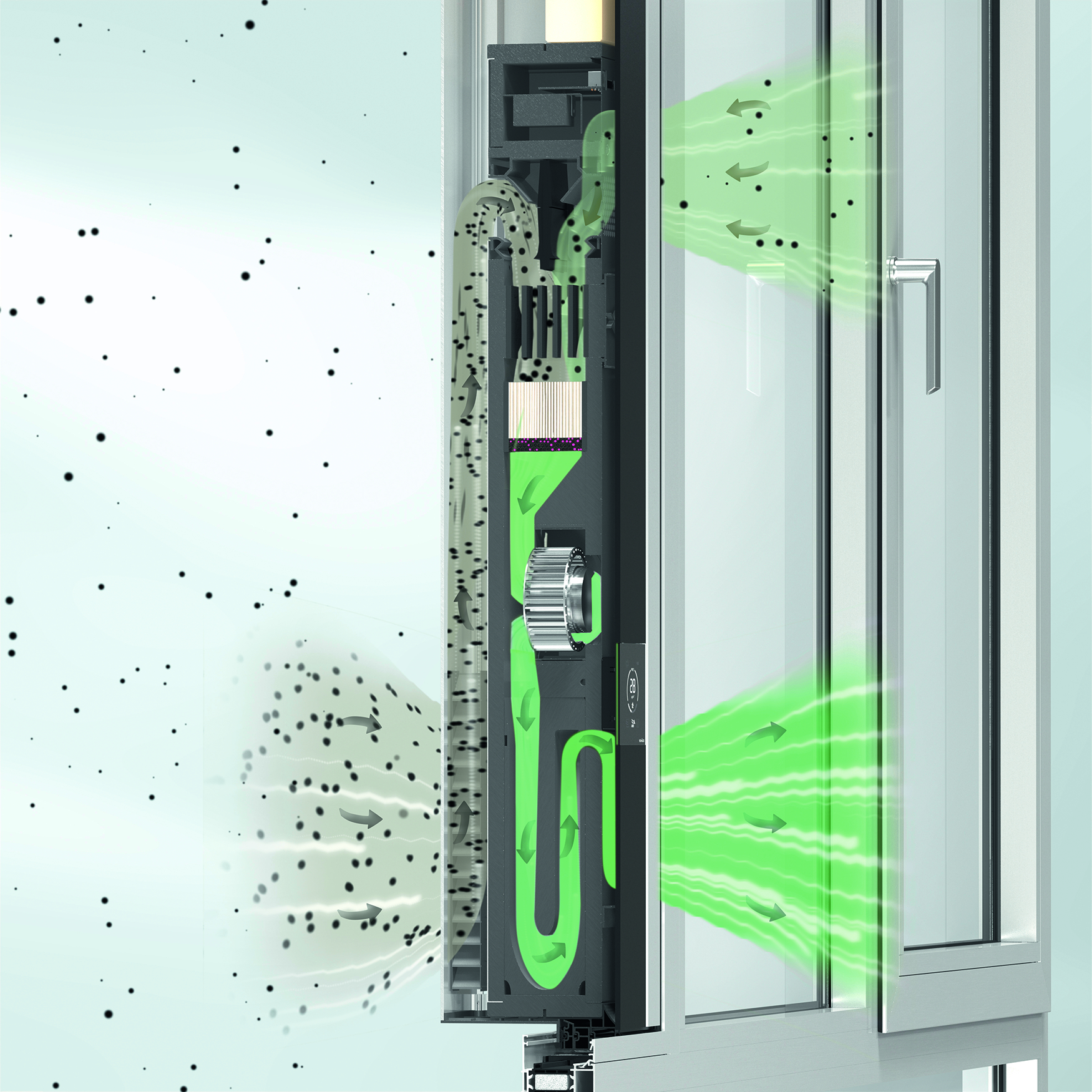 Ventilační systém Schüco VentoLife je integrován do okenního profilu a disponuje víceúrovňovým vysoce výkonným vzduchovým filtrem, který příchozí vzduch zbavuje nežádoucích nečistot – prachu a dalších částic škodlivých pro lidské zdraví a vyskytujících se hlavně ve městech. Při recirkulaci je vzduch uvnitř místnosti čištěn tak kvalitně, že nejmenší částice, alergeny a škodlivé sloučeniny pod jeden mikrometr se ze vzduchu odfiltrují s účinností 99,5 %.