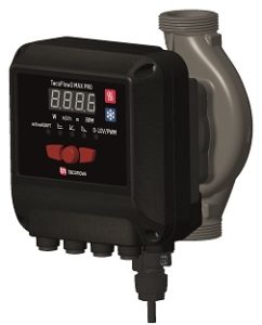 Čerpadlo TacoFlow3 Max Pro nabízí oproti standardní verzi další režim a doplňkové funkce. Požadovanou minimální a maximální rychlost lze plynule nastavovat a namísto jen jedné lze zvolit pět křivek proporcionálního a konstantního tlaku. Díky nočnímu poklesu se otáčky v noci automaticky sníží, čímž se šetří energie. Ovládání pomocí PWM nebo signálu 0-10V je možné i u tohoto typu. Veškerá nastavení a provozní data jsou pohodlně zobrazována na barevném LED displeji, což výrazně usnadňuje instalaci a údržbu čerpadla. Nebudou-li dimenze čerpadel TacoFlow3 Max a TacoFlow3 Max Pro dostačovat, mohou instalatéři sáhnout po osvědčeném čerpadle Taco Flow Maxi.