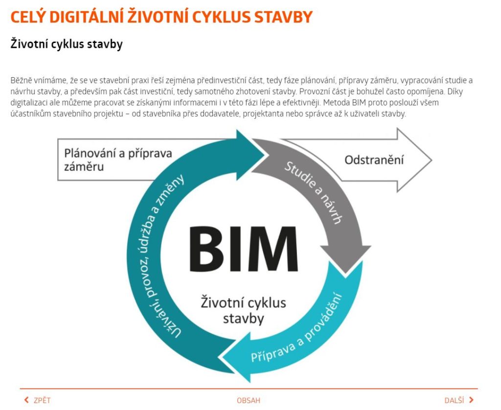 V aplikaci STAWEBNICE v sekci tzv. „Digitálního dvojčete stavby“ je v kapitolách vysvětlena terminologie metody BIM, základní principy a aspekty včetně konkrétních opatření, jak metodu BIM uplatňovat v rámci celého životního cyklu stavby. Nově jsou také v aplikaci edukační videa s tématikou „BIM projektování v ARCHICADU“. Internetová příručka STAWEBNICE je tak svým grafickým a interaktivním pojetím vhodným zdrojem pro čerpání informací a nástrojem pro výuku na středních školách stavebního zaměření. Jednoduše aktualizovatelný obsah a tvoření textů odborníky z praxe za podpory partnerů projektu zajišťuje předávání aktuálních a správných informací studentům i učitelům.