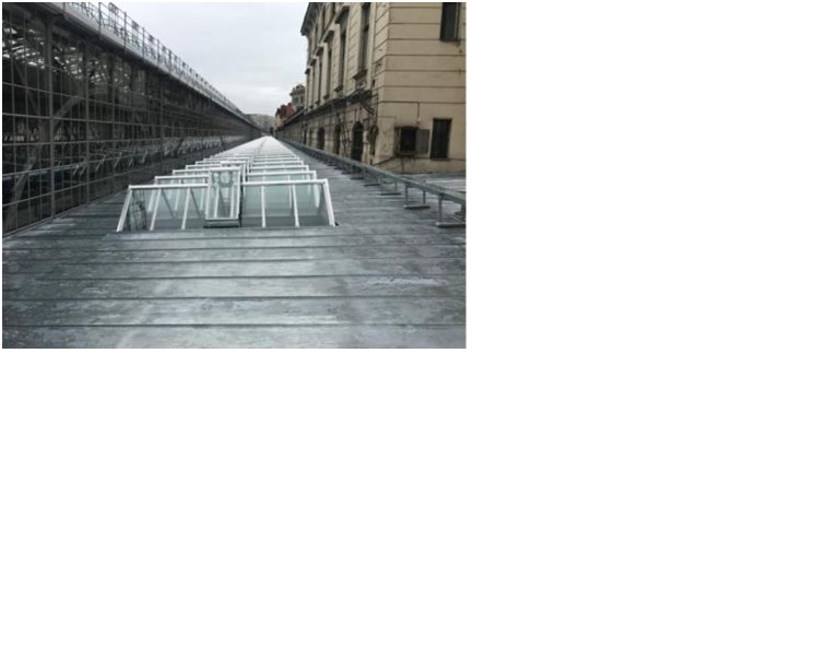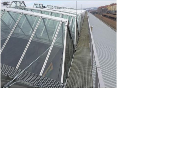 Kompozitní bezúdržbové lávky byly umístěny na střechu mezi světlíky, z vnější i vnitřní strany čelní fasády a nad celým zastřešením nástupišť. Na přibližně 1300 m2 plochy byly vyměněny dřevěné fošny za rošty z kompozitu. Kompozitní rošty a lávky mají protiskluzovou úpravu, jsou odolné proti povětrnostním vlivům, nekorodují a ani v mrazech se nesnižuje jejich stabilita a pevnost. Využívají se proto nejen na střechy, ale i pro speciální požadavky na vodohospodářských stavbách, v chemickém průmyslu, potravinářství a také pro železniční a silniční koridory. Kompozitní lávky vyhovují i testům SŽDC na pevnostní veličiny a protipožární odolnost, takže se montují i na exponovaných stavbách, jako jsou např. železniční mosty.