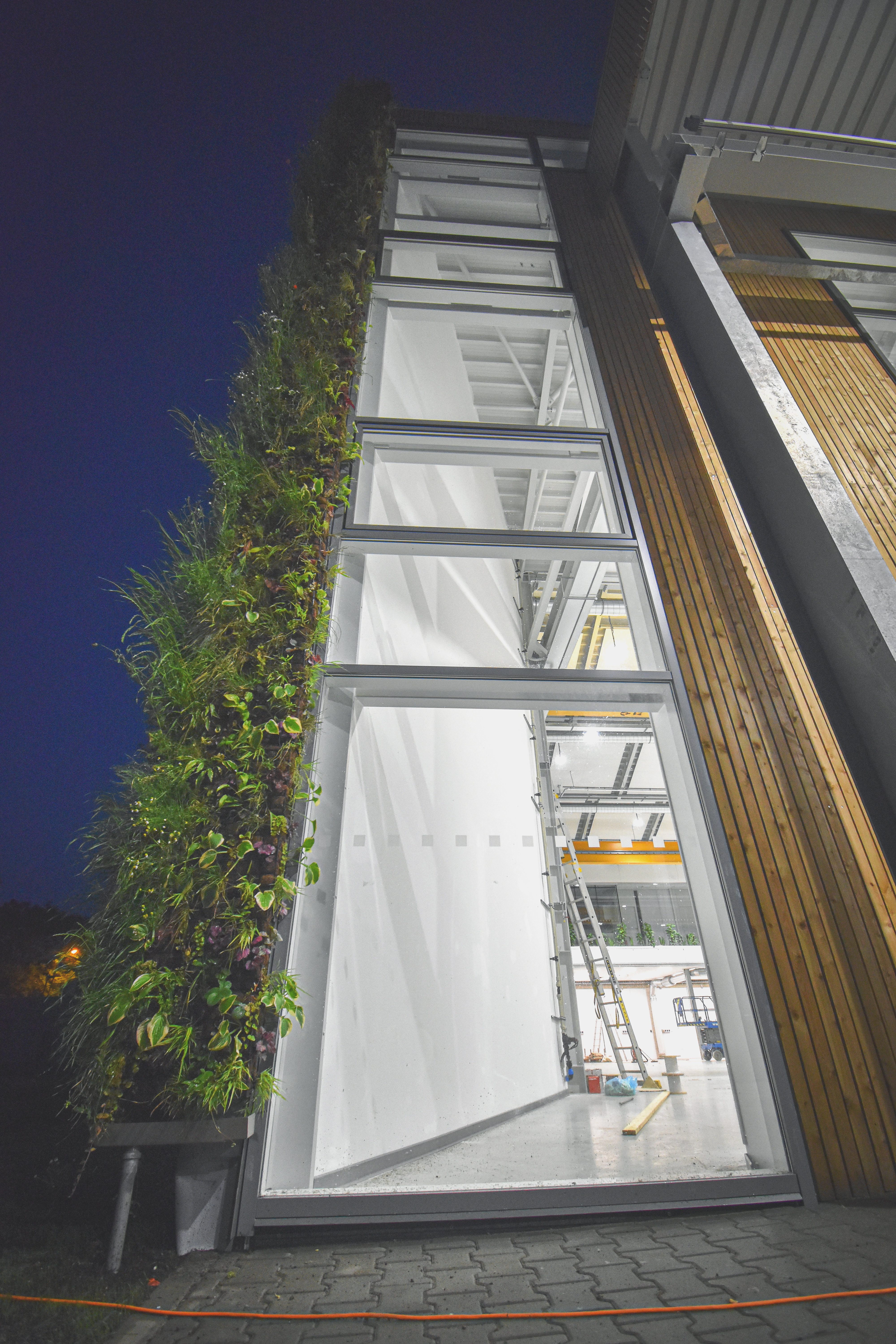 Stavba začala v říjnu loňského roku a přišla na 60 milionů korun. Na budově s 1423 čtverečními metry zastavěné plochy je na fasádě a střeše osazeno zelení 1693 čtverečních metrů. K zavlažování zelených ploch na fasádě i střeše slouží odpadní voda čištěná kořenovou čističkou.