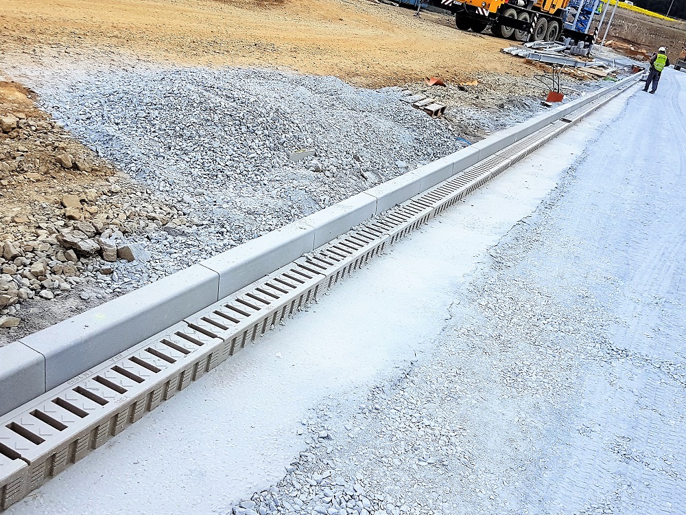 Modulové obrubníkové odvodnění z polymerického betonu nezasahuje do vozovky a řeší odvodnění i při malých spádech (ve dvou výškových stupních podle potřebné hydraulické kapacity). Instalace plynulých tvarovek pro vjezdy nebo snížené obrubníky pro chodce a cyklisty zajistí bezpečný pohyb vozidel i osob. Materiál je nenáročný, pevný a vhodný i pro vysoké zátěže.