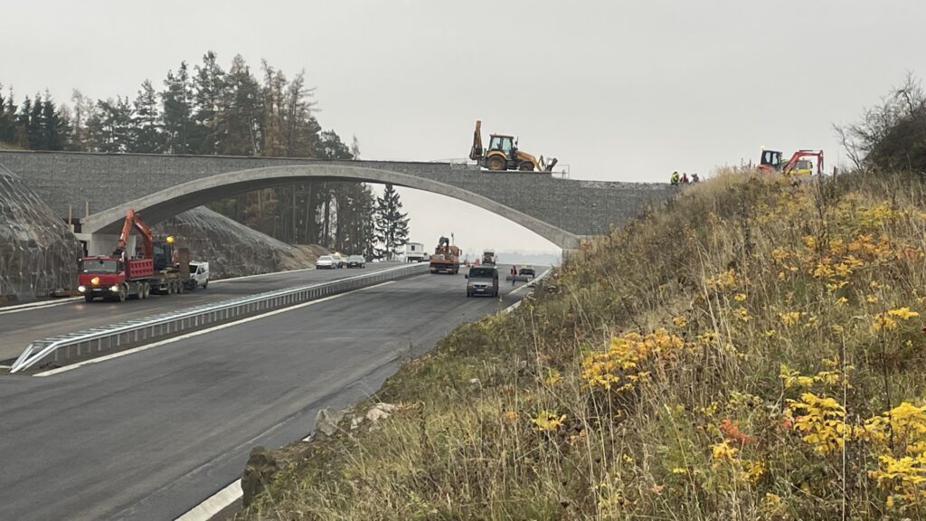 Právě úsek dálnice, na němž se po dobu uzavírky pracovalo, přitom patří k nejnáročnějším na celé nově budované trase. Dálnice se totiž v sousedství Milína zařezává do vrchu Kojetín, jehož skalní masiv museli stavebníci z velké části odstranit a odtěžili při tom zhruba 43 tisíc kubických metrů horniny. V 1,4 kilometru dlouhé pasáži navíc vyrostly dvě mostní konstrukce. Jeden z mostů je přímo součástí dálnice a překlenuje místní komunikaci. Další most vede přes dálnici a poslouží jako ekodukt pro přechod zvěře.