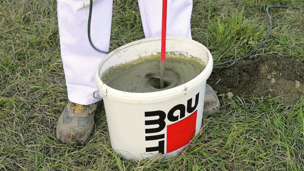 Metoda s mícháním betonové směsi za pomoci předepsaného množství záměsové vody se provádí standardně v kbelíku pomocí elektrického mísidla. Před aplikací betonové směsi je třeba pevně fixovat sloupek v otvoru.