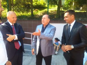 Na fotografii: Zleva – Radim Passer, Milan Vopička (zakladatel, prezident a majitel firmy Sport-Technik Bohemia, autor programu „Výstavba víceúčelových sportovních hřišť jako prostředek boje proti drogám“ a Roman Šebrle