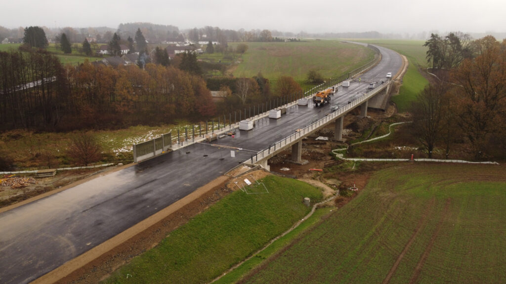 Především půjde o odvodnění stavby, terénní a vegetační úpravy, a hlavně zbývající konstrukční vrstvy nové komunikace, instalaci svodidel a trvalého dopravního značení.