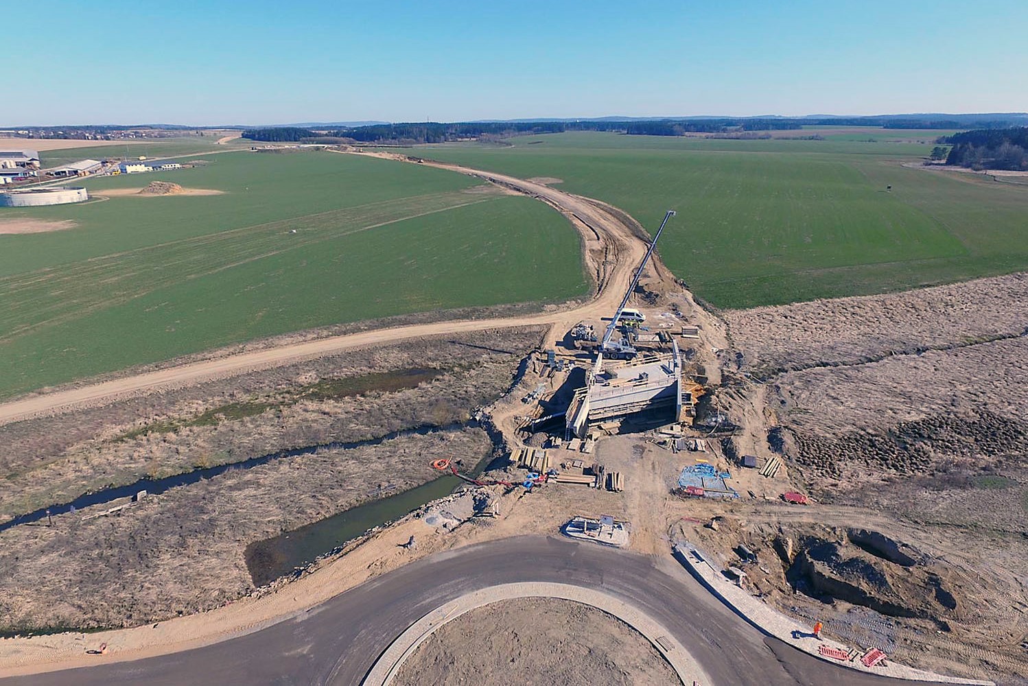 Nová komunikace dlouhá 5,1 kilometru vyrostla východně od Nového Veselí a Budče, její výstavba trvala jeden a půl roku. „Projekt zahrnoval směrové odklonění silnice II/353 mimo zástavbu a vybudování hlavní trasy v délce 5060 metrů na zelené louce. Dále napojení obce Budeč, kruhovou křižovatku ve směru Březí nad Oslavou a napojení Nového Veselí. Součástí stavby byl také most přes řeku Oslavu a přeložky inženýrských sítí,“ upřesňuje hlavní stavbyvedoucí společnosti Skanska Petr Vejražka s tím, že při zakládání a sanaci násypů nového silničního tělesa použili specialisté Skanska struktury geokošů a geomříží pro vyztužení zeminy. Tyto materiály by měly zlepšit únosnost zakládaných násypů a přispět tak k vyšší kvalitě díla.
