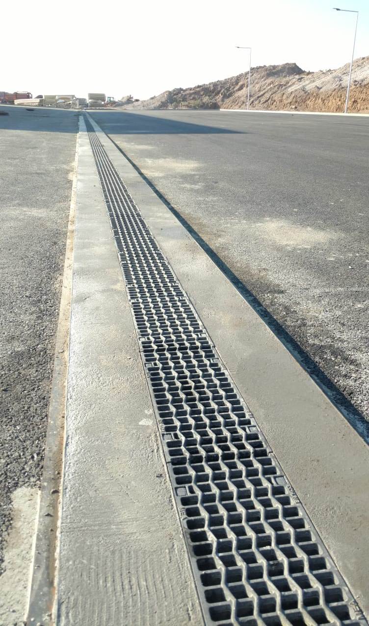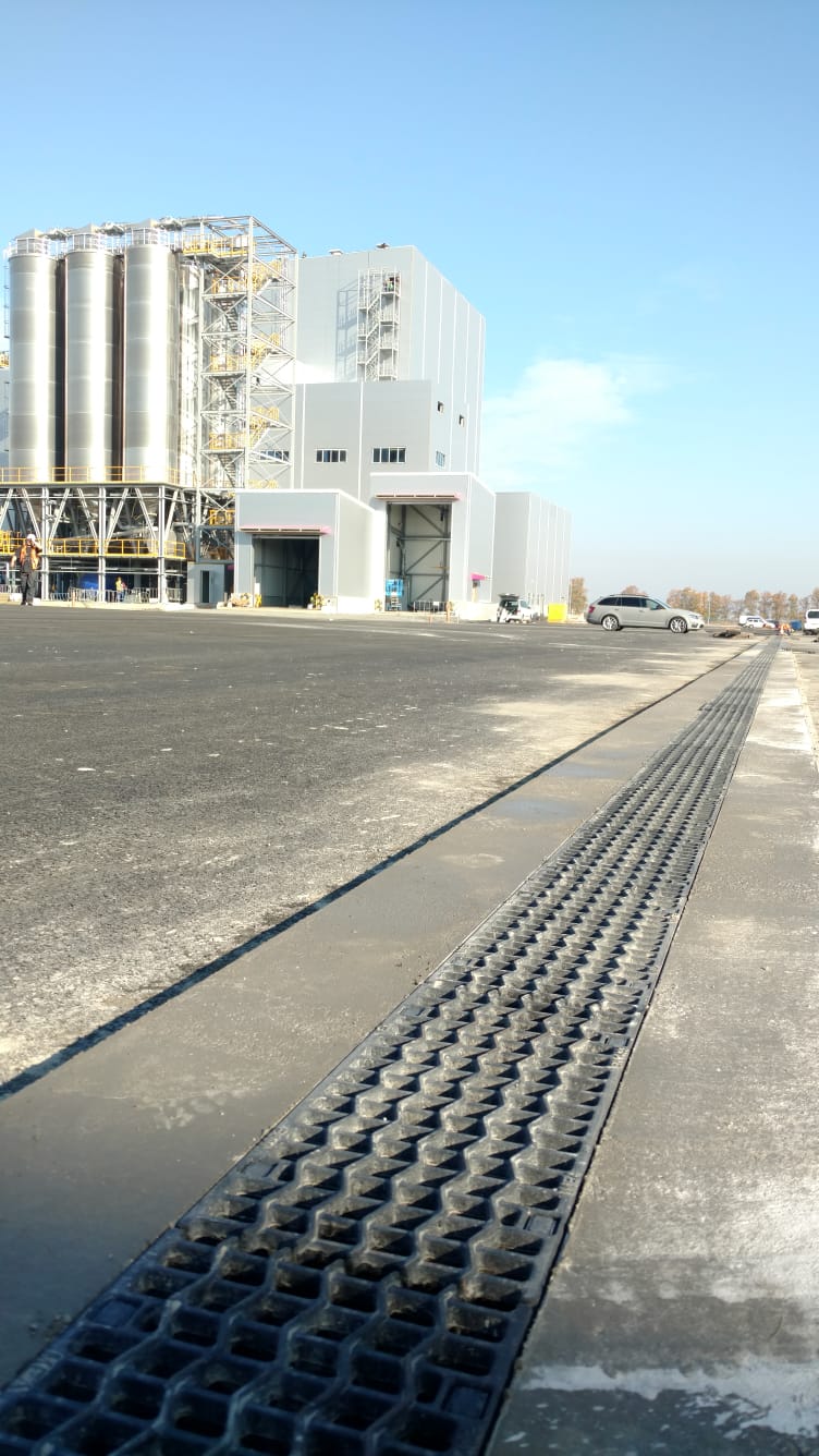 Součástí stavebních dokončovacích prací bylo i vyřešení odvodnění celého areálu. O velikosti plochy svědčí i to, že zde bylo položeno cca 960 m kompozitních žlabů MEARIN Expert v šířkách 100, 150 a 200 mm, které jsou určeny pro vysokou zátěž ve třídě až E600 kN. Žlaby z SMC, polyesteru vyztuženého skelnými vlákny, s ocelovou ochrannou hranou a litinovým roštem jsou vhodné pro komunikace, které mají vysoké nároky na provoz, údržbu a zátěž. Kompozitní materiály se totiž vyznačují vysokou pevností ve všech směrech a odolností vůči chemikáliím i náročným povětrnostním podmínkám.