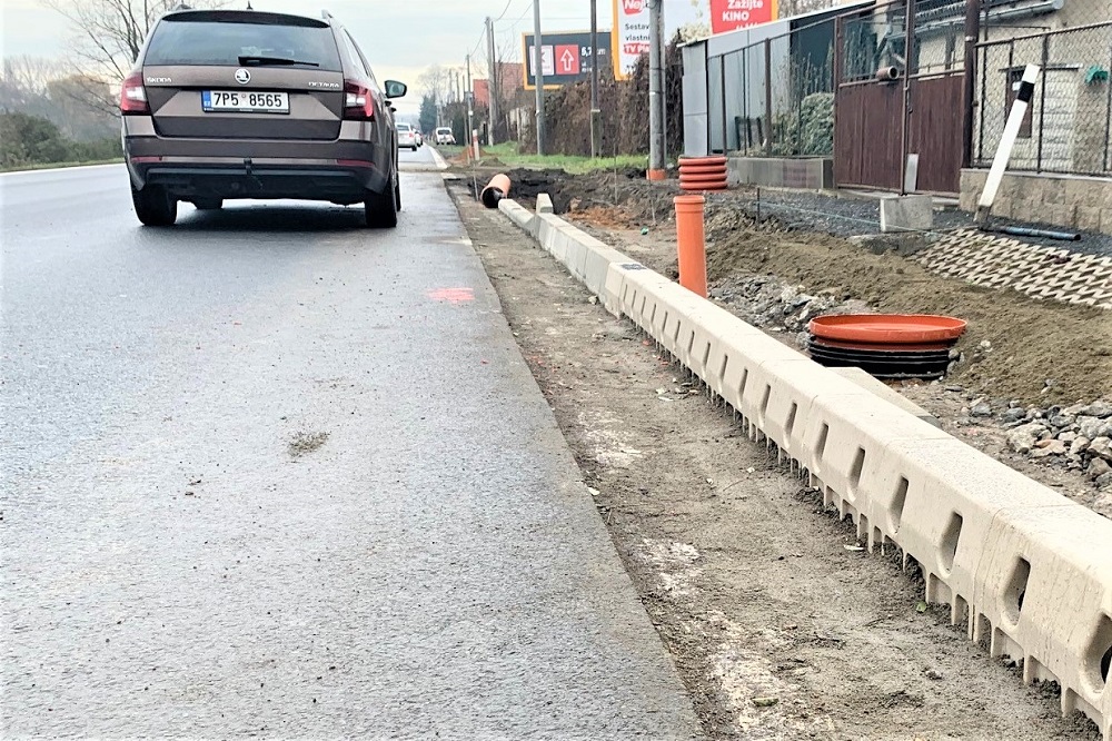 Na hlavní komunikaci Mělník-Praha využito obrubníkové odvodnění MEA KERB