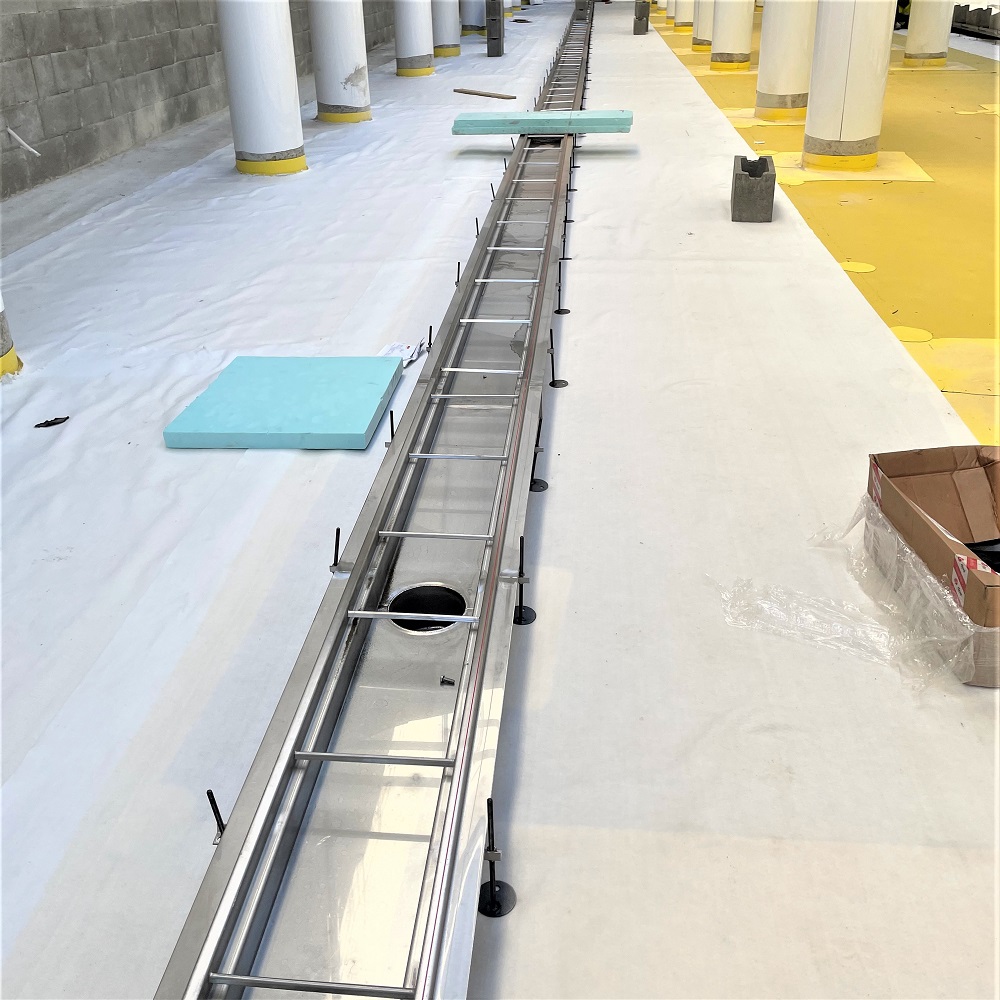 Instalovány byly nerezové žlaby šířky 300 mm s páskovým, snadno čistitelným a pevným, roštem. Provedení a detaily nerezového odvodnění R´3200 splňují nejvyšší nároky pro spolehlivé odvodnění a údržbu v potravinářském provozu. Dobré zkušenosti z předešlých instalací byly jedním z důležitých parametrů při rozhodování o instalaci nerezových systémů MEA.