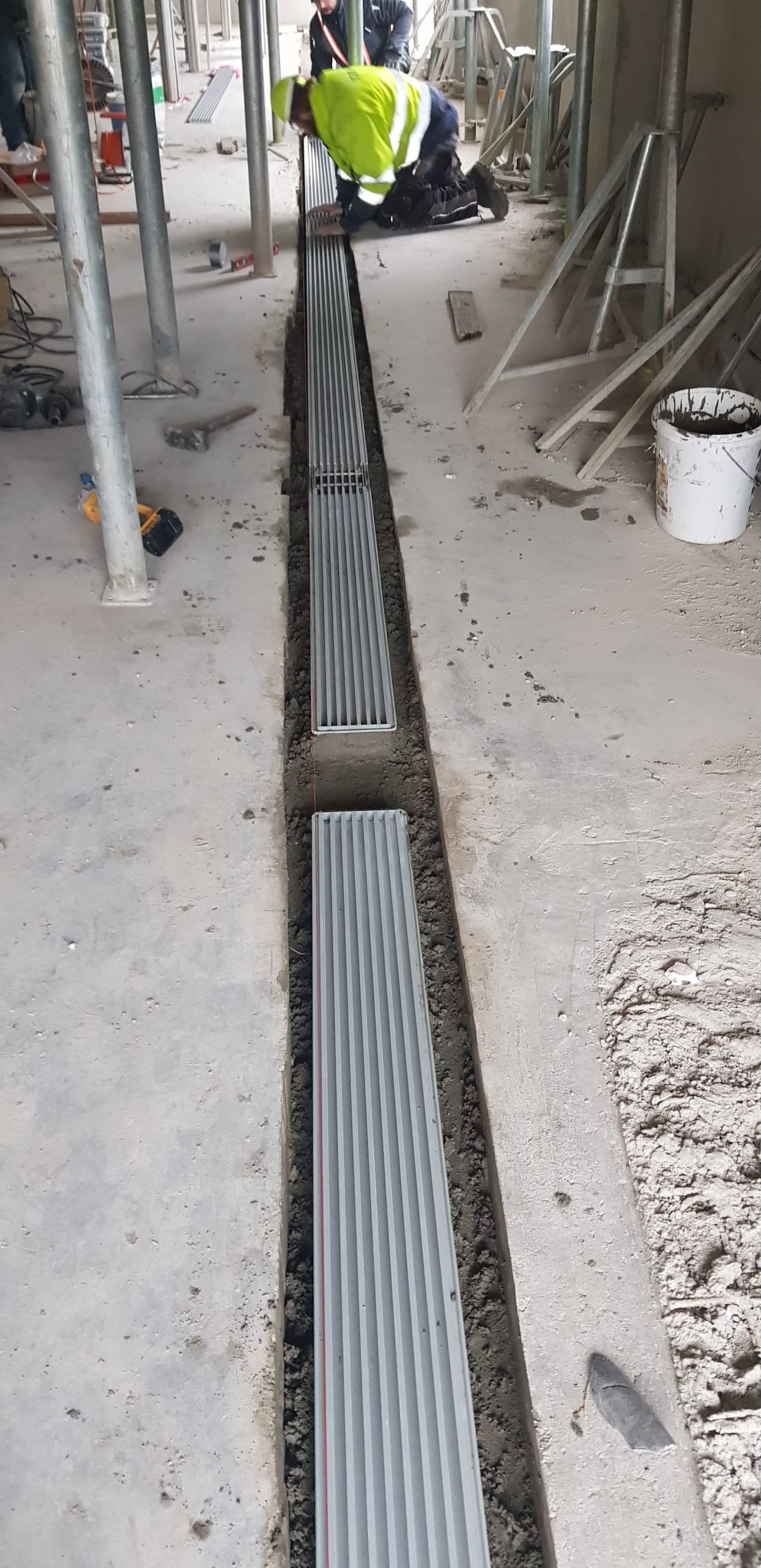 V Brně na ulici Polní finalizuje nová stavba parkovacího domu pro přibližně 110 aut. Je připravena i pro osoby se sníženou pohyblivostí a rodiny s kočárky. Nedávno bylo dokončeno odvodnění s vypařovacími žlaby MEA PG 150 EVO, které mají výšku pouhých 30 mm a umožňují instalaci nad výztuží konstrukce stropu. Žlaby z vysokopevnostního SMC kompozitu jsou bezroštové s tichým a bezpečným pojezdem. Tyto žlaby spolehlivě pojmou úkapovou vodu z automobilů přijíždějících za deště nebo sněžení.