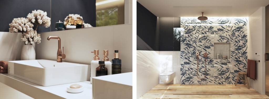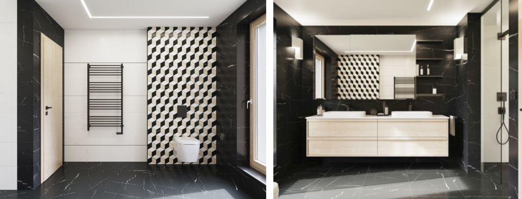•             kombinace s matnými nebo lesklými obkládačkami série Vein pro černobílé provedení koupelny