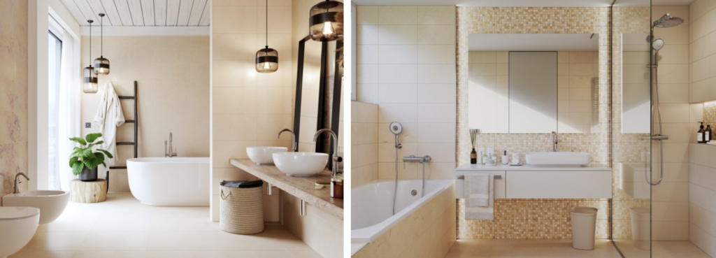 •             pro kombinaci s dekorem slouží rektifikovaná obkládačka 30 x 60 cm v nové barevnosti slonové kosti