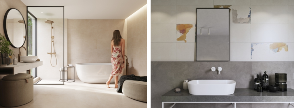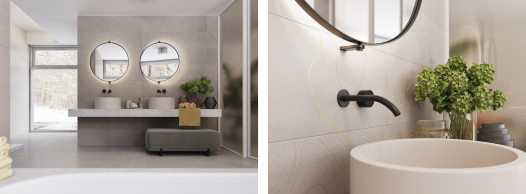 •             základ série tvoří lesklé a matné rektifikované obkládačky 30 x 60 cm a v luxusním velkoformátovém provedení 40 x 120 cm