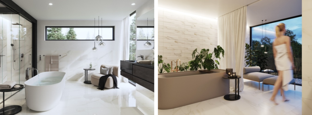 •             rektifikované obkládačky v luxusním velkoformátovém provedení 40 x 120 a 30 x 60 cm v lesklém provedení onyxového mramoru