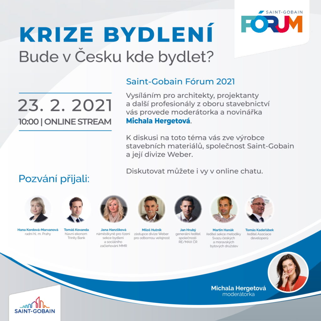 V úterý 23. 2. 2021 od 10:00 hodin vás zveme na online konferenci Saint-Gobain Fórum 2021.