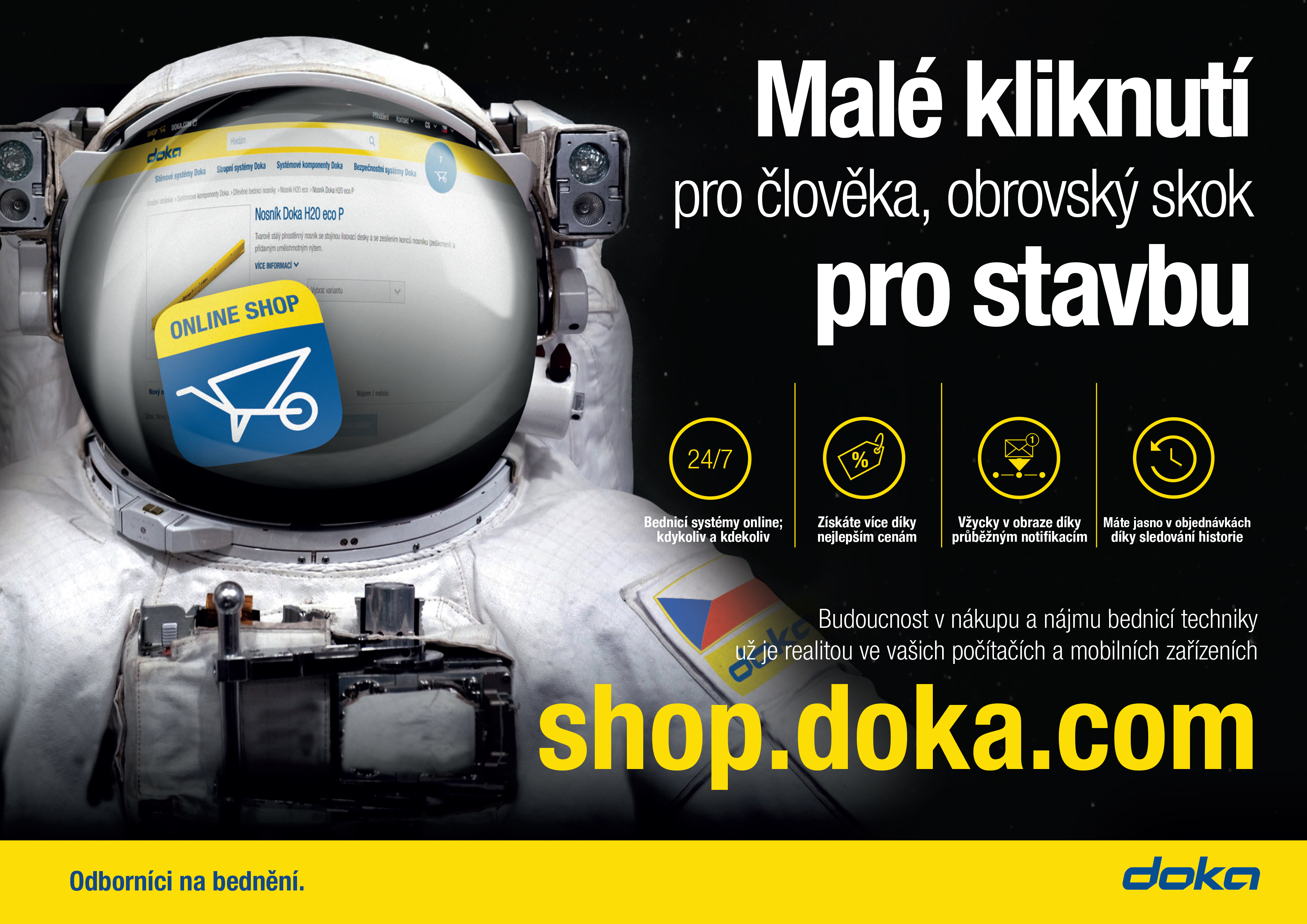 I když společnost Doka operuje ve více než sedmdesáti zemích světa, možnost online nákupu dostaly české firmy mezi prvními. „Společnost Doka provozuje elektronický obchod v domácím Rakousku, v Německu, ve Švýcarsku a ve Velké Británii. Česká republika je tak pátou zemí, kde je internetový obchod spuštěn. To dozajista potvrzuje jisté výsadní postavení a úctu k našim zákazníkům,“ komentuje Martin Tarant, manažer obchodu shop.doka.com