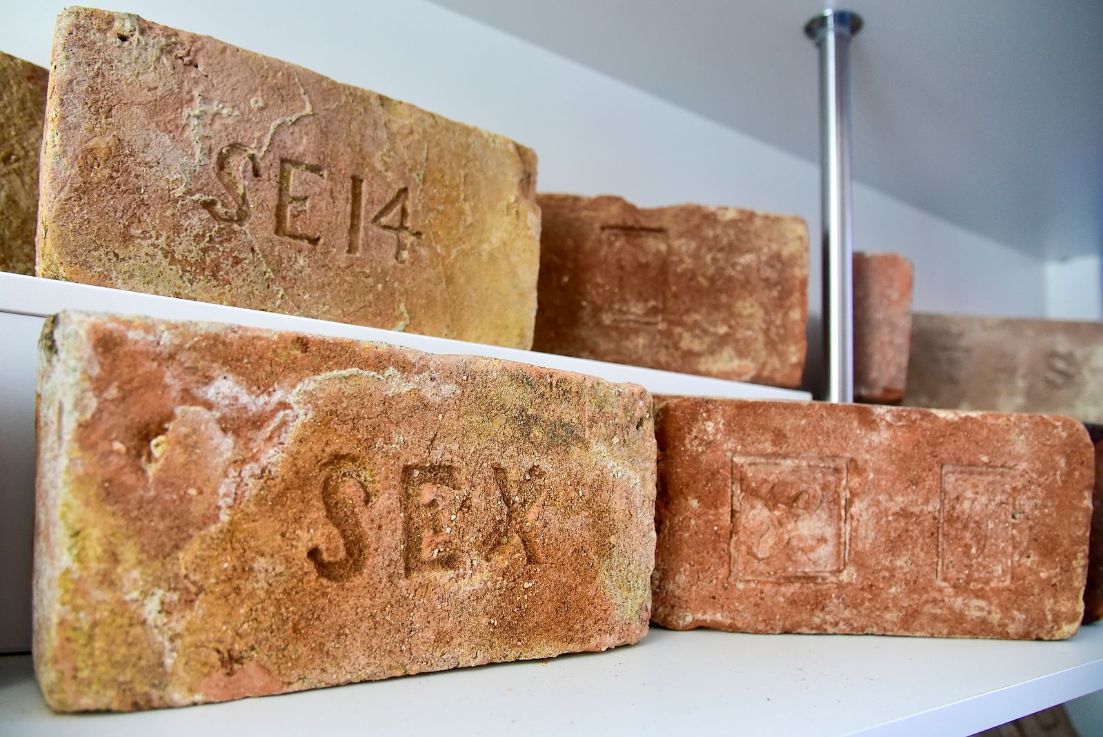 Ve vitrínách výstavního prostoru na fakultě ukazují výzkumníci pouze zlomek bohaté sbírky. „Všechny upoutá cihla s nápisem SEX. Archeologové objevili ve Vídeňské ulici řadu cihel označených SE, což jsou podle všeho iniciály pánů Spitze a Ehrenfesta, majitelů cihelny. Kromě iniciál se v té době doplňovaly cihly číslovkou, která označovala číslo formy, aby mohli dělníci vykázat, kolik jich vyrobili. Všechny řady byly popsané arabskou číslicí a už v 19. století asi někomu připadalo vtipné, když desítku napsal římskou číslicí,“ upozorňuje na jednu z kuriozit Anton.