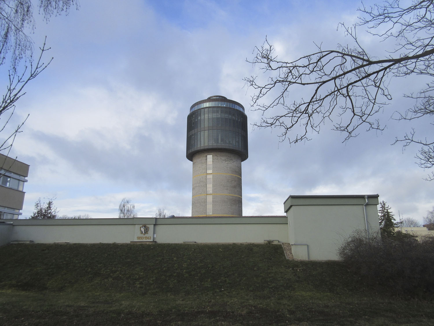 Vodojem v areálu vodáren z roku 1933 byl prvním vodojemem v republice postaveným ze železa, obezděný je cihlovým zdivem. Nosná konstrukce je z uhlíkové oceli C 38, tvoří ji osm sloupů. Jejich půdorys tvoří pravidelný osmiúhelník, vepsaný do kruhu o průměru 10,3 m. Ve výšce 25 m nad zemí byla uložena ocelová kostra betonové podlahy, na jejímž obvodu spočívala ocelová kostra horní obvodové stěny. Nádrž na vodu byla nýtovaná z ocelových plátů a měla tvar půlkoule o průměru 11,5 m nastavené ještě válcovou plochou o výši 4 m. Na obvodu nádrže byl zřízen ochoz.