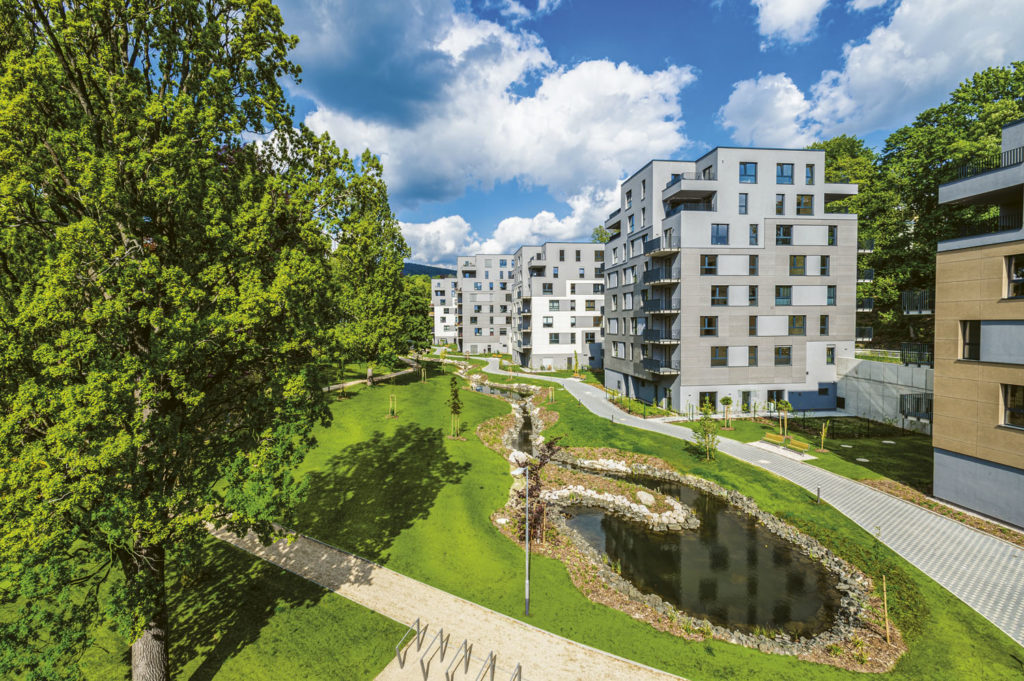 Téměř lázeňský charakter Masarykovy ulice byl formován od poloviny 19. století, dominují tu historicky významné budovy Městských lázní, Severočeského muzea, Obchodní a živnostenské komory (dnešní poliklinika) a novější stavba bývalého pavilonu Bytexu. Urbanistická kompozice rezidenčního areálu navazuje na strukturu zástavby a respektuje její charakter a měřítko. Bytové domy jsou citlivě usazeny v prostředí romantického lesoparku v údolí Jizerského potoka. Sadové úpravy parku s jezírky a zahrady střešních teras jsou v souladu s charakterem čtvrti. Domy čtvercového půdorysu vybíhají ze zalamované podnože krytého parkingu. Děleny jsou do tří horizontálních pásem, fasády mají obklad z cementovláknitých desek.