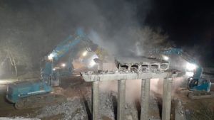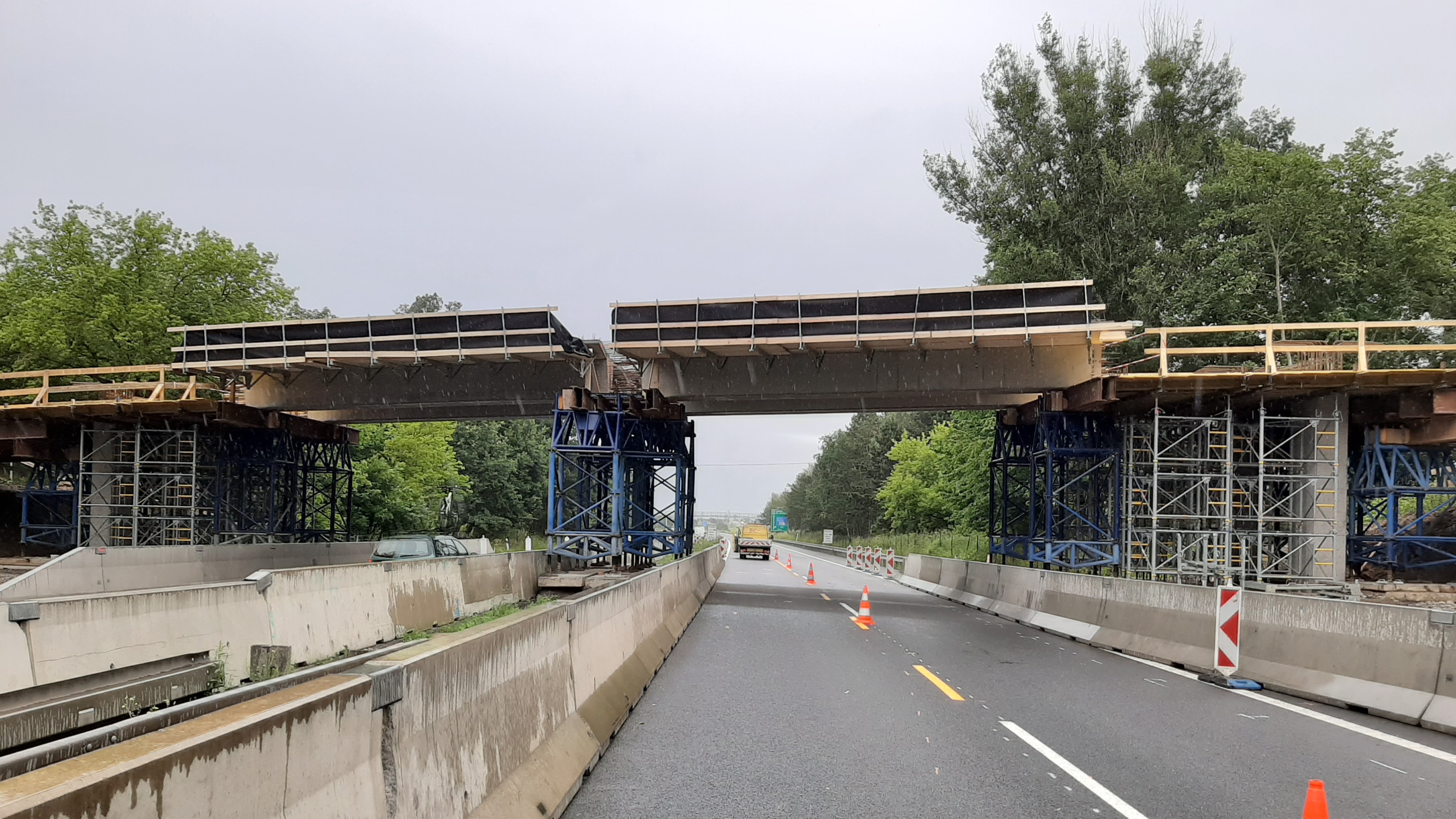Rekonstrukce mostu spočívala v demolici původního provedené při celkové uzavírce dálnice D10 a ve výstavbě nového mostu, včetně založení. Nosnou konstrukci tvoří z části atypické železobetonové prefabrikované nosníky, které se vyráběly přímo na stavbě, z části je monolitická.