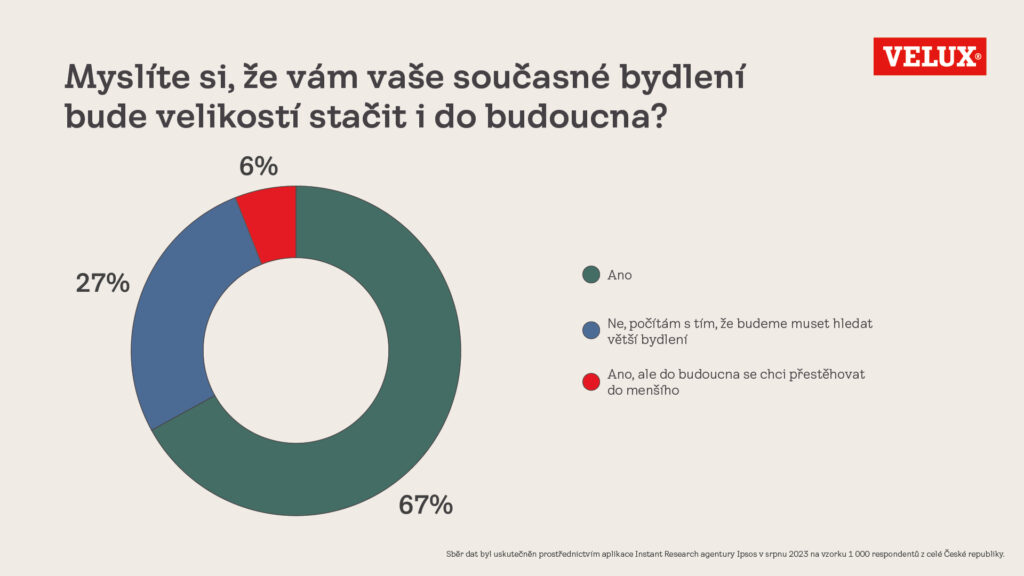 Dvě třetiny českých domácností (67 %) jsou spokojeny s velikostí svého současného bydlení. Více než čtvrtina (27 %) počítá s tím, že bude muset hledat větší bydlení, naopak 6 % by v budoucnu rádo do menšího. „A 69 % z těch, kteří budou větší bydlení hledat, se domnívá, že by jim půdní prostor pomohl. I z toho důvodu zůstává obrovský počet nevyužitých půdních prostor zajímavým fenoménem, který v budoucnu může poměrně jednoduše pomoci k řešení složité bytové otázky především mladých rodin,“ uzavřel Zdeněk Okáč.