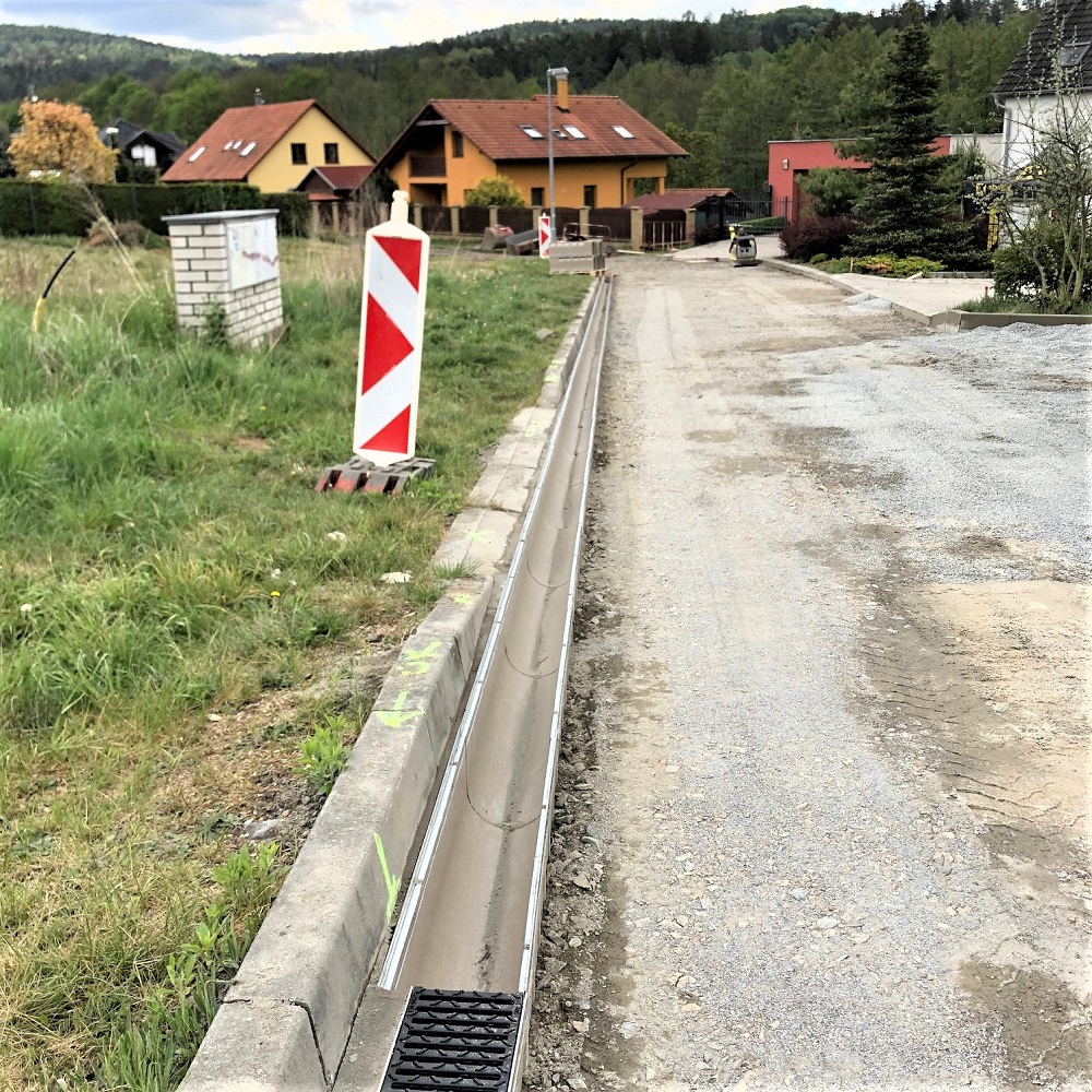 Při probíhající rekonstrukci silnic v obci Libeř ve Středočeském kraji bylo nutné řešit i odvodňování. Vzhledem k podmínkám a umístěním podpovrchových sítí v ulici bylo jako nejvýhodnější způsob zvoleno řešení s liniovým povrchovým odvodněním MEA SV s ocelovou ochrannou hranu a litinovým můstkovým roštem D400 kN. Celkem 300 metrů dlouhá linie středně zátěžových žlabů byla navržena podle hydraulického výpočtu. Příznivé spádové podmínky komunikace dovolily využít kapacitu žlabů SV1000, 1500 a 2000 s odtokem až na konci celé linie. Výpočet zajistila a garantuje firma MEA. Polymerbetonové žlaby jsou určeny i pro parkoviště, pěší zóny nebo manipulační plochy se zatížením až do E600 kN.