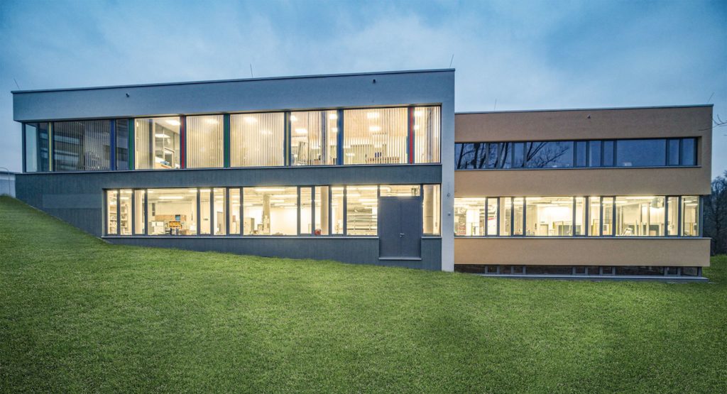 „Železobetonový monolitický objekt byl citlivě zasazen do okolní krajiny a nové prostory jsou propojené s původní budovou firmy průchodem. Dominantními prvky provozní budovy jsou velká okna s barevným členěním,“ říká Tomáš Hess, obchodní ředitel společnosti HSF System, která byla generálním dodavatelem stavby.