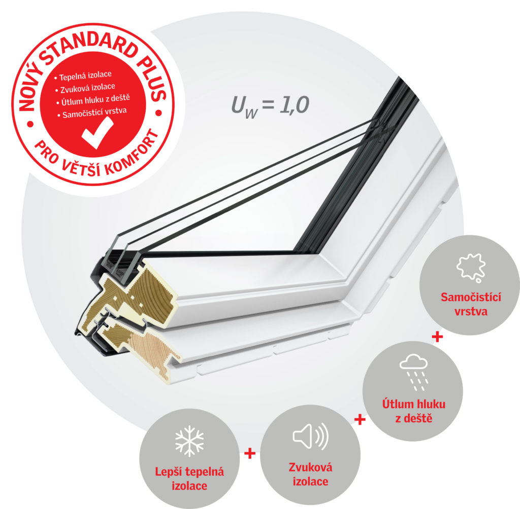Sortiment značky VELUX se rozšiřuje o nové střešní okno s trojsklem a prémiovými benefity za dostupnou cenu. Tepelněizolační parametry novinky vyhovují přísnějším požadavkům stavební legislativy po roce 2020. Zlepšila se také zvuková izolace a schopnost snížit hluk z deště, čtvrtým benefitem je speciální samočistící vrstva usnadňující údržbu. Nové střešní okno zvyšuje laťku kvality v cenově dostupné kategorii Standard Plus.