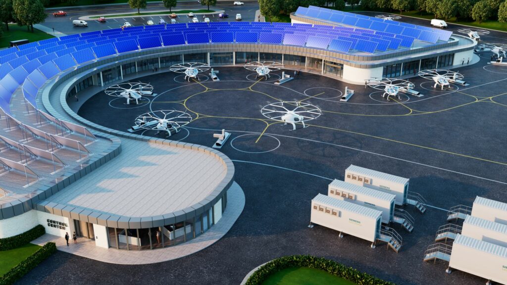Společnosti Siemens a Skyway se dohodly na spolupráci zaměřené na budování elektrické a digitální infrastruktury pro provoz vertiportů. Vertiporty jsou centra pro dopravní prostředky typu VTOL (s kolmým startem a přistáním), jako jsou například letecké taxíky nebo drony. Spolupráce zahrnuje stanovení energetických nároků vertiportů a vývoj systému udržitelných dodávek energie, dobíjení a tzv. „systému systémů“, který bude podporovat provoz létajících strojů. Inovace v oblasti infrastruktury vertiportů budou mít zásadní význam pro budoucí rozšiřitelnost provozu elektrických vozidel typu eVTOL.